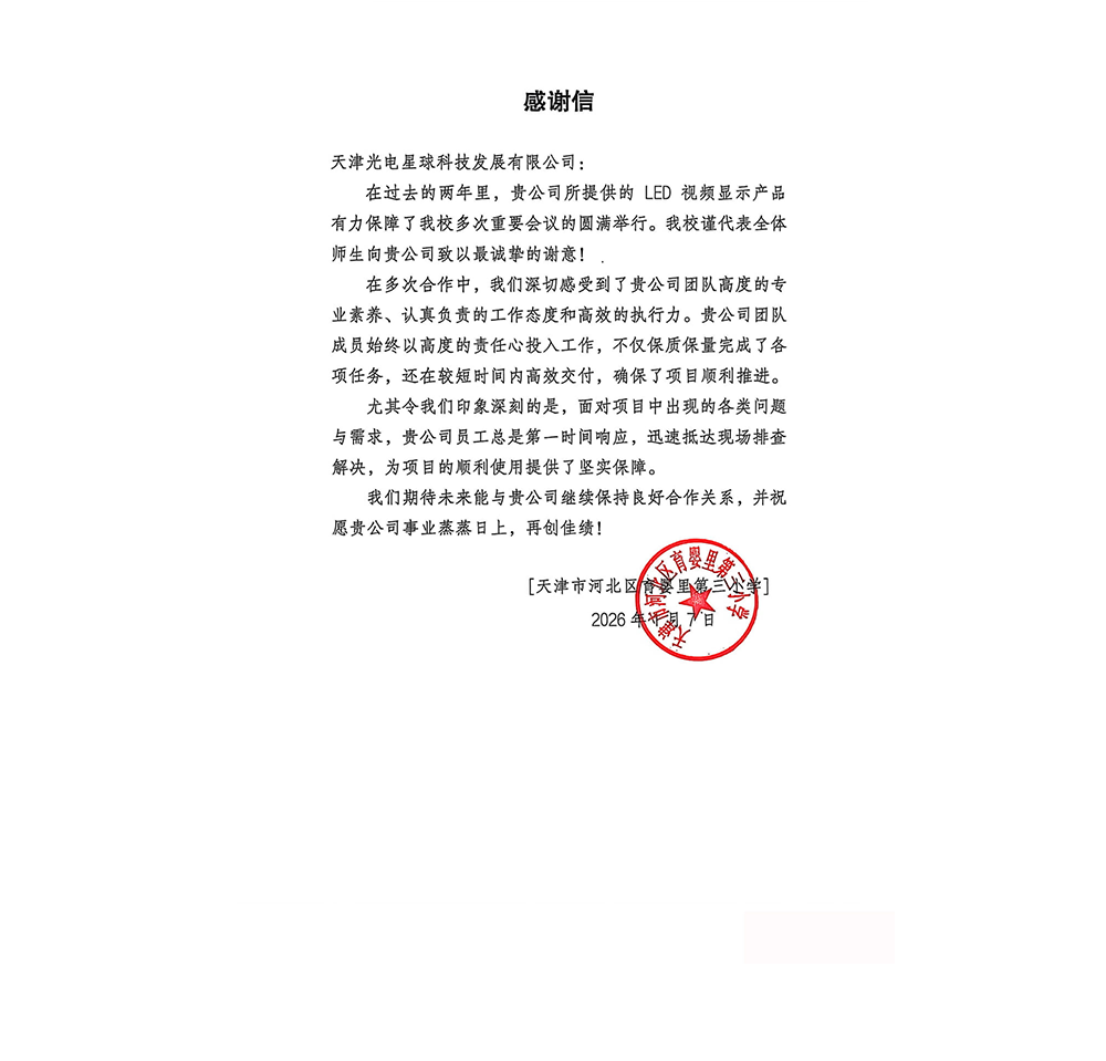 近日,我公司很荣幸地收到某学校单位寄来的感谢信。客户的认可与肯定,是我们前进的动力,我司将继续努力,持续提供更优质的服务!